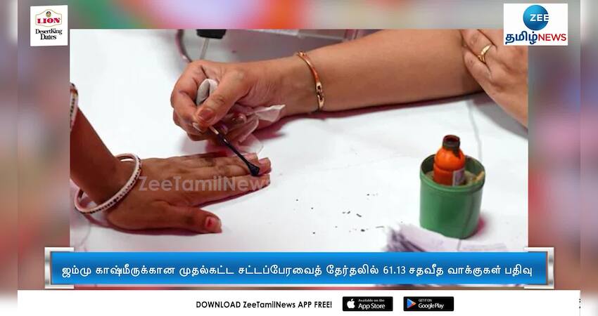 ஜம்மு காஷ்மீருக்கான முதல்கட்ட சட்டப்பேரவைத் தேர்தலில் 61.13 சதவீத வாக்குகள் பதிவாகியுள்ள நிலையில், அதிக அளவாக கிஷ்த்வார் மாவட்டத்தில் 80.14 சதவீத வாக்குகள் பதிவாகியுள்ளன.