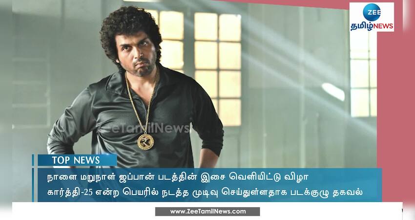 ஜப்பான் படத்தின் இசைவெளியிட்டு விழாவை நடிகர் கார்த்தி-25 என்ற பெயரில் நடத்த முடிவு செய்துள்ளதாக படக்குழு தெரிவித்துள்ளது.