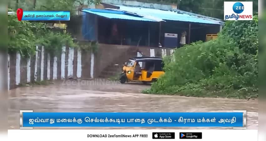 வேலூர் மாவட்டத்தில் பெய்த கனமழையால் ஜவ்வாது மலைக்கு செல்லக்கூடி தரைப்பாலம் அடித்துச் செல்லப்பட்டது.