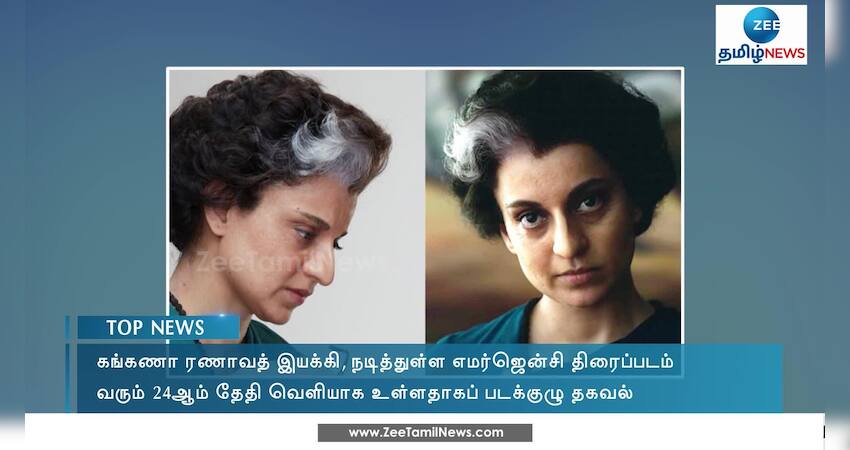 பாலிவுட் சினிமாவில் முன்னணி நடிகையாக வலம் வரும் கங்கணா ரணாவத் இயக்கி நடித்துள்ள எமர்ஜென்சி திரைப்படம் வரும் 24ஆம் தேதி வெளியாக உள்ளதாகப் படக்குழு தெரிவித்துள்ளது.
