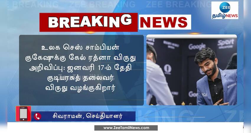 உலக செஸ் சாம்பியன் குகேஷுக்கு கேல் ரத்னா விருது அறிவிப்பு: ஜனவரி 17-ம் தேதி குடியரசுத் தலைவர் விருது வழங்குகிறார்