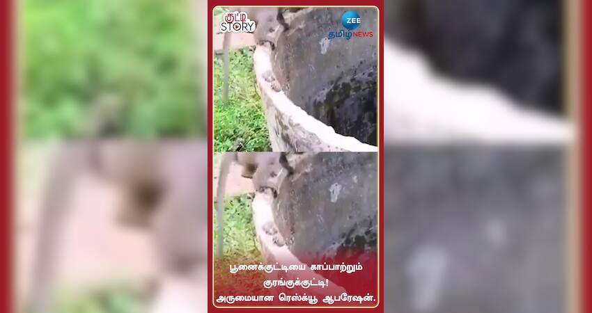 பூனைக்குட்டியை காப்பாற்றும் குரங்குக்குட்டி! அருமையான ரெஸ்க்யூ ஆபரேஷன்....