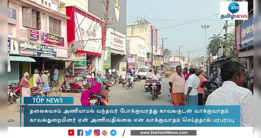 கும்பகோணம் அருகே தலைக்கவசம் இல்லாமல் வந்ததால் போலீசார் அபராதம் விதித்த நிலையில், அவர்களுடன் அந்த நபர் வாக்குவாதம் செய்யும் வீடியோ வைரலாகி வருகிறது.