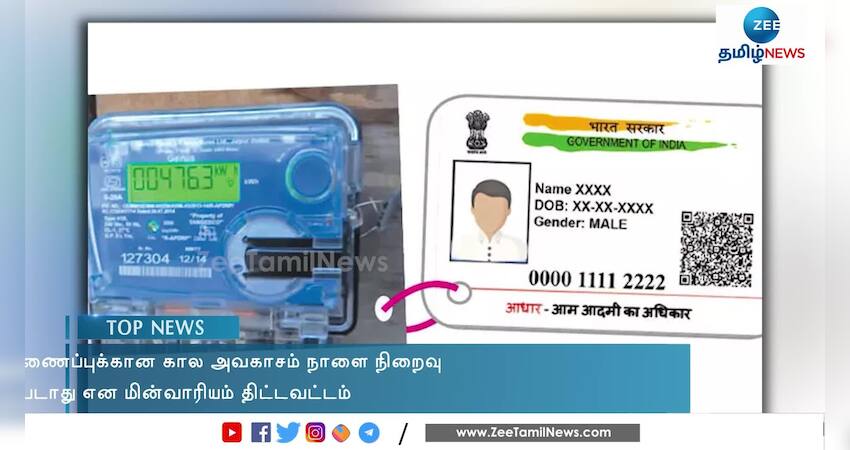 மின் இணைப்பு எண்ணுடன் ஆதார் எண்ணை இணைப்பதற்கான கால அவகாசம் நாளையுடன் நிறைவடைகிறது.