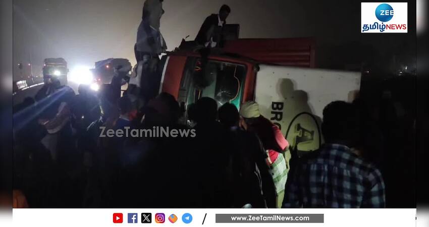 திருப்பத்தூர் மாவட்டம் வாணியம்பாடியில் பார்சல் லாரி சாலையில் கவிழ்ந்து விபத்துக்குள்ளான நிலையில் ஓட்டுநர் நல்வாய்ப்பாக சிறு காயங்களுடன் உயிர் தப்பினார்.