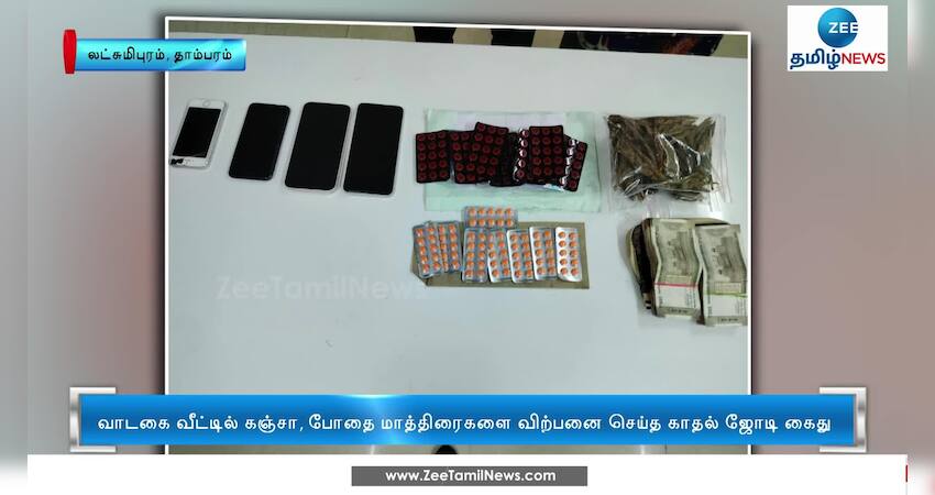 சென்னை குரோம்பேட்டையில் வாடகை வீடு எடுத்து கஞ்சா மற்றும் போதை மாத்திரைகளை விற்பனை செய்து வந்த காதல் ஜோடியை போலீஸார் கைது செய்தனர்.