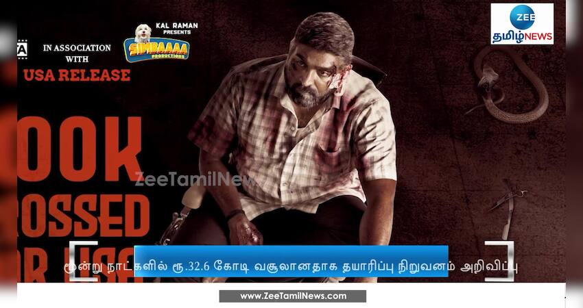 மூன்று நாட்களில் ‘மகாராஜா’ படம் 32.6 கோடி ரூபாய் வசூலானதாக படத்தின் தயாரிப்பு நிறுவனமான பேஷன் ஸ்டுடியோ நிறுவனம் தனது சமூக வலைதளத்தில் அதிகாரப்பூர்வமாக அறிவித்துள்ளது.