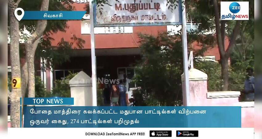 சிவகாசி அருகே போதை மாத்திரை கலக்கப்பட்ட மதுபான பாட்டில்களை விற்பனை செய்த நபரை போலீஸார் கைது செய்து அவரிடமிருந்து 274 மதுபான பாட்டில்களை பறிமுதல் செய்தனர்.