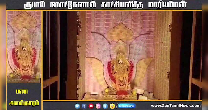 தமிழ் புத்தாண்டை ஒட்டி மாரியம்மனுக்கு ரூபாய் நோட்டுகள் மற்றும் தங்கம், வைர நகைகளால் அலங்காரம் செய்யப்பட்டு சிறப்பு பூஜை செய்யப்பட்டது.