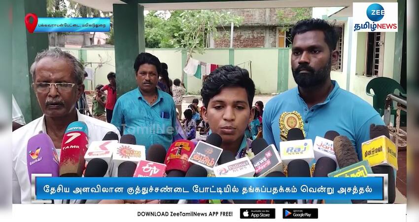 ஜம்மு-காஷ்மீரில் நடைபெற்ற தேசிய அளவிலான குத்துச்சண்டை போட்டியில் தங்கப்பதக்கம் வென்ற மயிலாடுதுறையை சேர்ந்த நரிக்குறவர் சமூகத்தைச் சேர்ந்த மாணவருக்கு பொதுமக்கள் உற்சாக வரவேற்பு அளித்தனர்.