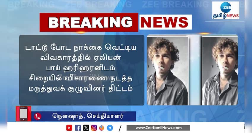 டாட்டூ போட நாக்கை வெட்டிய விவகாரத்தில் ஏலியன் பாய் ஹரிஹரனிடம் சிறையில் விசாரணை நடத்த மருத்துவக் குழுவினர் திட்டம்.