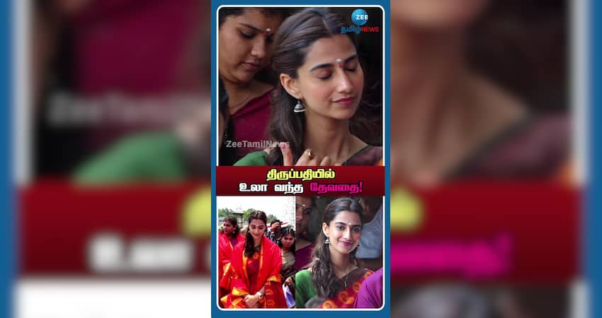 கோட் படத்தின் மூலம் பிரபலம் அடைந்த நடிகை மீனாட்சி சவுத்ரி திருப்பதி ஏழுமலையான் கோயிலில் சாமி தரிசனம்.