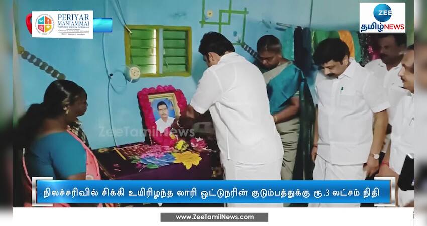 லாரி ஓட்டுநரின் குடும்பத்துக்கு ரூ.3 லட்சம் நிதி: அமைச்சர் மதிவேந்தன் வழங்கினார்