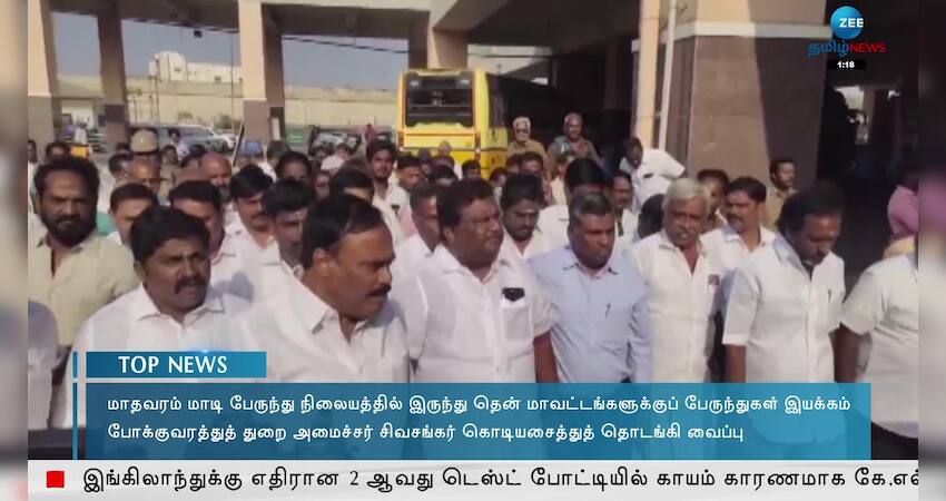 மாதவரம் மாடி பேருந்து நிலையத்தில் இருந்து முதல் முறையாக தென் மாவட்டங்களுக்குச் செல்வதற்கான பேருந்துகளைப் போக்குவரத்துத் துறை அமைச்சர் சிவசங்கர் கொடியசைத்துத் தொடங்கி வைத்தார்.