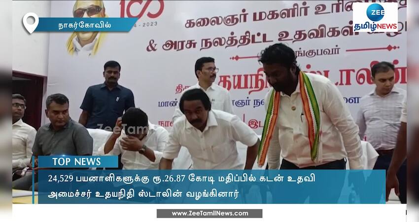 நாகர்கோவிலில் மகளிர் திட்டத்தின் கீழ் 255 சுய உதவி குழுக்களை சேர்ந்த 24,529 பயனாளிகளுக்கு 26 கோடியே 87 லட்சம் ரூபாய் மதிப்பில் கடன் உதவிகளை அமைச்சர் உதயநிதி ஸ்டாலின் வழங்கினார்.