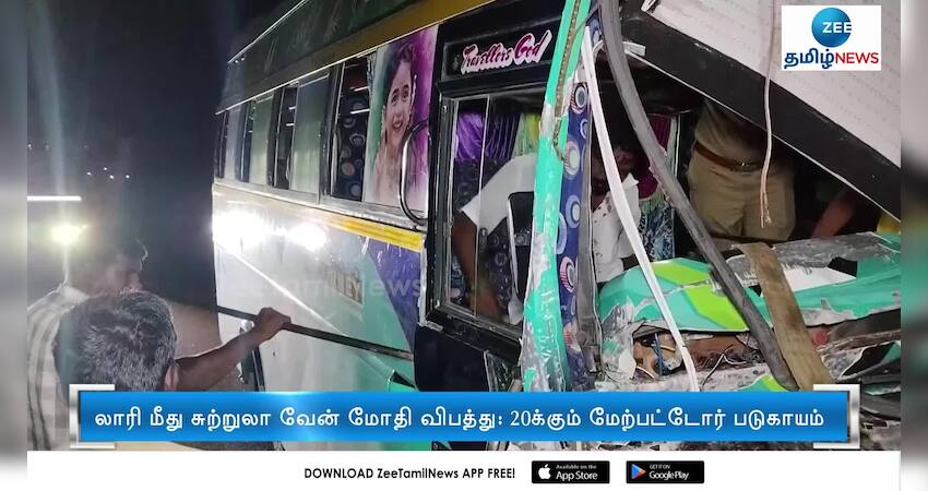 லாரி மீது சுற்றுலா வேன் மோதி விபத்து: 20க்கும் மேற்பட்டோர் படுகாயம்