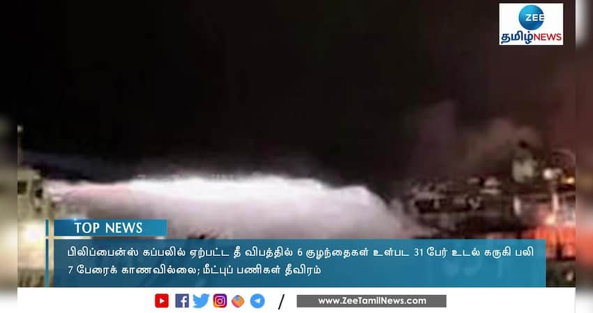 பிலிப்பைன்ஸ் நாட்டில் கப்பல் ஒன்றில் ஏற்பட்ட தீ விபத்தில் 6 குழந்தைகள் உள்பட 31 உயிரிழந்தனர். 7 பேரை காணவில்லை என கூறப்படும் நிலையில், மீட்புப்பணி தீவிரமாக நடந்துவருகிறது.