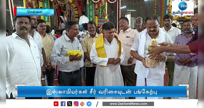சென்னை திருவொற்றியூர் காளியம்மன் கோயில் கும்பாபிஷேகத்தில் இஸ்லாமியர்கள் சீர்வரிசை கொடுத்து கலந்து கொண்டனர்