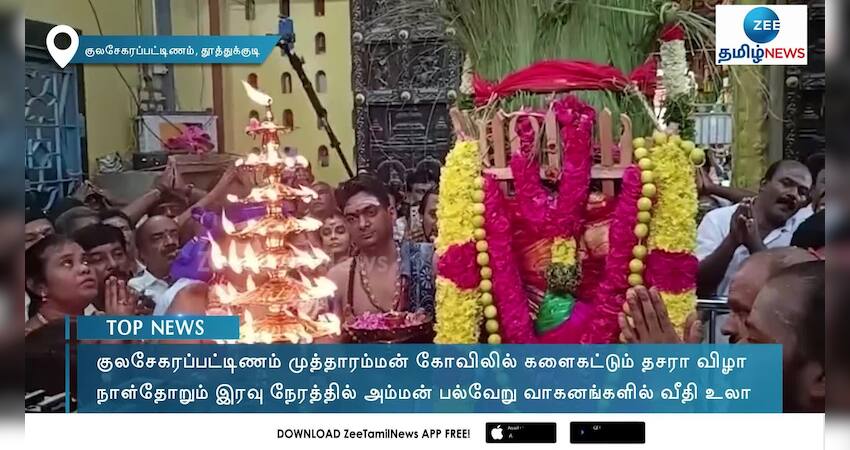 குலசேகரப்பட்டிணம் முத்தாரம்மன் கோவிலில் கொடியேற்றத்துடன் தசரா விழா தொடங்கியுள்ளதால் அங்கு விழாக்கோலம் பூண்டுள்ளது.