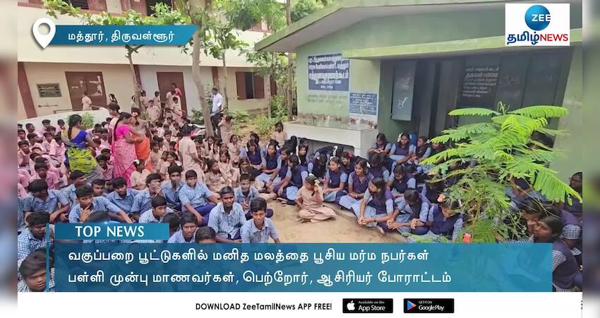 திருவள்ளூர் அருகே ஊராட்சி அரசு மேல்நிலைப் பள்ளி வகுப்பறை பூட்டுகளில் மனித மலத்தைப் பூசிய மர்ம நபர்கள் மீது நடவடிக்கை எடுக்க கோரி மாணவர்கள் பள்ளி முன்பு ஆர்ப்பாட்டத்தில் ஈடுபட்டனர்.