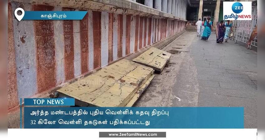 காஞ்சிபுரம் வரதராஜ பெருமாள் திருக்கோவில் மூலவர் கருவறையில், துவாரக பாலகர்கள் நின்றருளும் அர்த்த மண்டபத்தில் புதிய வெள்ளிக் கதவு திறக்கப்பட்டது.