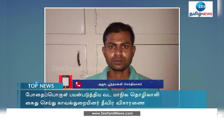 சென்னையை அடுத்த பூந்தமல்லியில் மெட்ரோ ரயில் பணியில் ஈடுபட்டு வந்த வட மாநில தொழிலாளி போதைப்பொருள் வைத்திருந்ததாக கைது செய்யப்பட்டுள்ளார்.