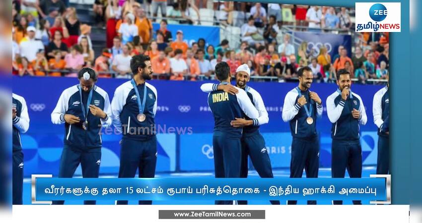 பாரீஸ் ஒலிம்பிக்கில் வெண்கலப் பதக்கம் வென்ற இந்திய ஹாக்கி வீரர்களுக்கு தலா 15 லட்சம் ரூபாய் பரிசுத்தொகை வழங்கப்படும் என இந்திய ஹாக்கி சம்மேளனம் அறிவித்துள்ளது.