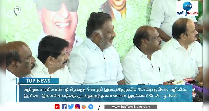 ஈரோடு கிழக்கு இடைத்தேர்தலில் இரட்டை இலை சின்னத்தில் வேட்பாளரை நிறுத்த உள்ளதாக ஓ. பன்னீர்செல்வம் தெரிவித்துள்ளார்.
