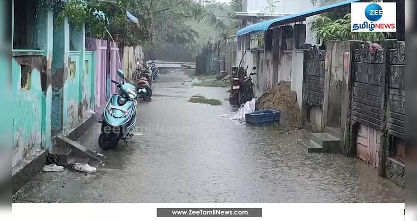 மயிலாடுதுறை மாவட்டத்தில் கன மழை பெய்து வரும் நிலையில், பெருமாள்பேட்டை கிராமத்தில் வீதிகளில் மழைநீர் சூழ்ந்துள்ளது.
