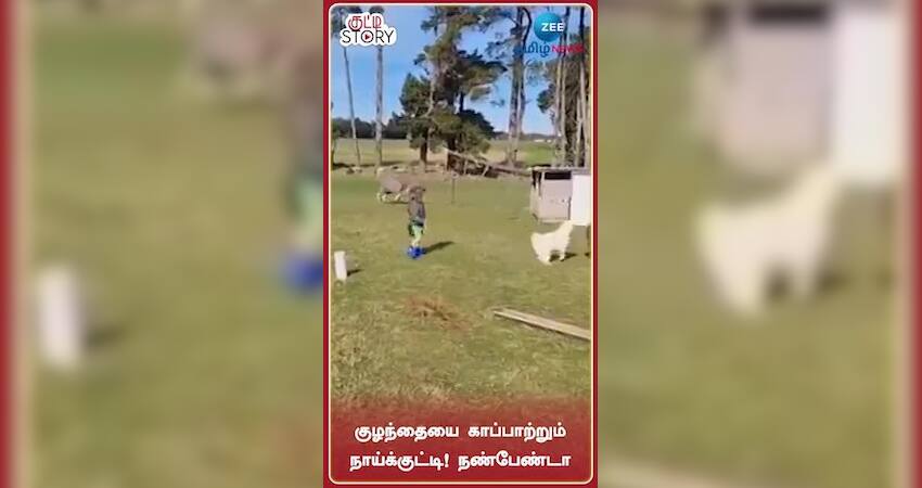 பாசத்துக்கு கட்டுப்பட்ட பாசக்கார நாய்க்குட்டி... குழந்தையை காப்பாற்றும் நண்பேண்டா நாய்க்குட்டி!!