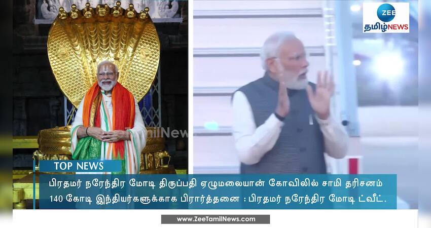 பிரதமர் நரேந்திர மோடி திருப்பதி கோவிலில் இன்று காலையில் ஏழுமலையானை தரிசனம் செய்தார்.