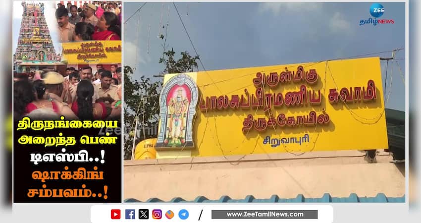 சிறுவாபுரி முருகன் கோவிலில் பக்தர்களுக்கு இடையூறு ஏற்படுத்தும் வகையில் யாசகம் பெற முயன்ற திருநங்கைகளை போலீசார் அப்புறப்படுத்த முயன்ற போது தள்ளுமுள்ளு ஏற்பட்டுள்ளது. அப்போது திருநங்கை ஒருவரை பெண் டிஎஸ்பி அறைந்ததால் கடும் பதற்றமான சூழல் நிலவியது. இது குறித்து இந்த தொகுப்பில் பார்க்கலாம்.