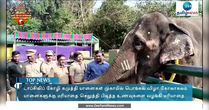 ஆனைமலை அருகே டாப்சிலிப் கோழி கமுத்தி யானைகள் முகாமில் பொங்கல் விழா கோலாகலமாக கொண்டாடப்பட்டது.