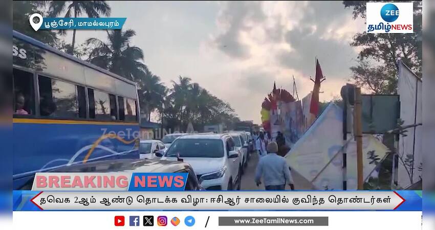 தவெகவின் 2ஆம் ஆண்டு தொடக்க விழாவை முன்னிட்டு ஈசிஆர் சாலையில் குவிந்த தொண்டர்கள்: போக்குவரத்து நெரிசலால் அணிவகுத்து நிற்கும் வாகனங்கள்