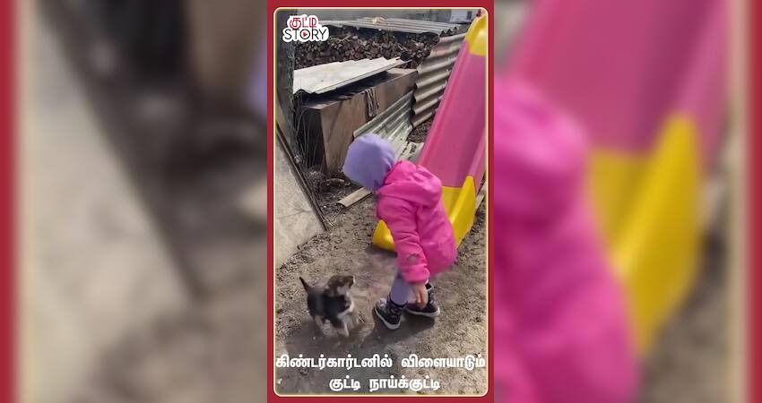 கிண்டர் கார்டன் ஒன்றில் பெண் குழந்தையுடன் நாய் ஒன்று ஜாலியாக விளையாடுகிறது