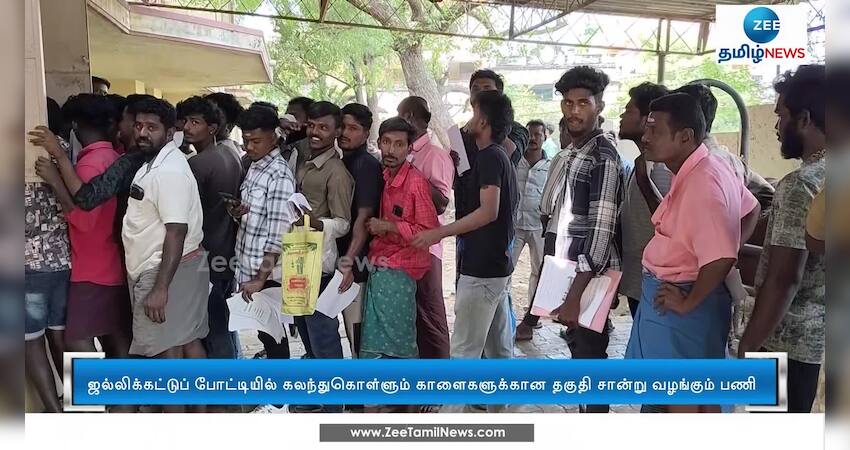 ஜல்லிக்கட்டுப் போட்டியில் கலந்துகொள்ளும் காளைகளுக்கான தகுதி சான்று வழங்கும் பணிகள் விறுவிறுப்புடன் நடைபெற்று வருகின்றன.