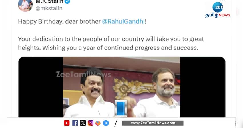 இந்த ஆண்டு முழுவதும் ராகுலுக்கு வளர்ச்சி மற்றும் வெற்றிகள் வந்து சேரட்டும் என்று முதலமைச்சர் மு.க.ஸ்டாலின் பிறந்தநாள் வாழ்த்து தெரிவித்துள்ளார்.