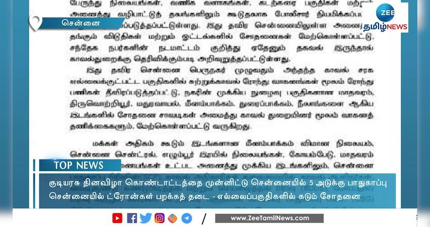 குடியரசு தின விழா! சென்னையில் 5 அடுக்கு பாதுகாப்பு