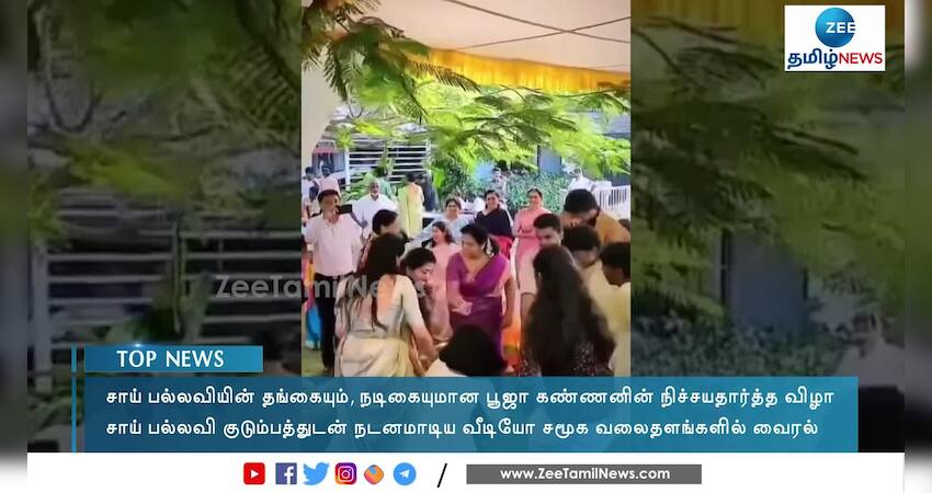 சாய் பல்லவியின் தங்கையும், நடிகையுமான பூஜா கண்ணனின் நிச்சயதார்த்த விழாவில், சாய் பல்லவி தனது குடும்பத்துடன் நடனமாடிய வீடியோ தற்போது சமூக வலைதளங்களில் வைரலாகி வருகின்றது.