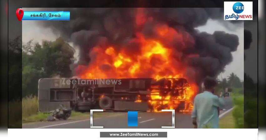 சேலம் அருகே தனியார் பேருந்து இருசக்கர வாகனத்தின் மீது மோதிய விபத்தில் 20க்கும் மேற்பட்ட பயணிகள் லேசான காயத்துடன் மீட்கப்பட்டுள்ள நிலையில், இருசக்கர வாகனத்தில் வந்தவர் பரிதாபமாக உயிரிழந்தார்.