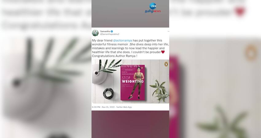 ரம்யாவின் புத்தகத்தை பாராட்டி வாழ்த்து தெரிவித்து சமூக ஊடகங்களில் பதிவு போட்ட நடிகை சமந்தா