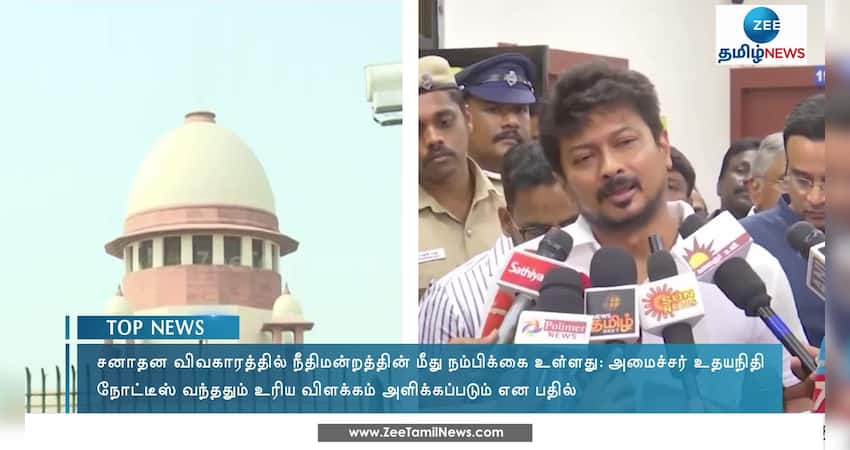 சனாதன விவகாரத்தில் நீதிமன்றத்தின் மீது நம்பிக்கை உள்ளது என்றும் நோட்டீஸ் வந்தவுடன் உரிய விளக்கம் அளிக்கப்படும் என்றும் அமைச்சர் உதயநிதி ஸ்டாலின் தெரிவித்துள்ளார்.