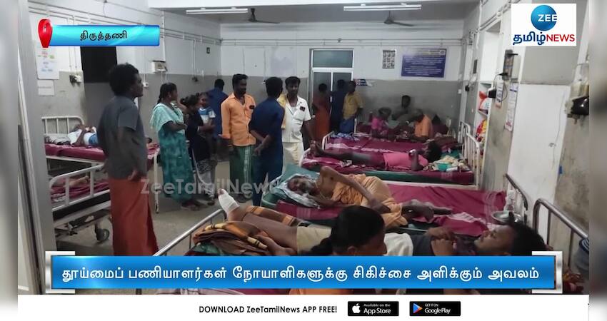 திருத்தணி அரசு பொது மருத்துவமனையில் மருத்துவர்கள் மற்றும் செவிலியர்கள் பற்றாக்குறையால் தூய்மைப் பணியாளர்கள் நோயாளிகளுக்கு ட்ரிப்ஸ் ஏற்றி சிகிச்சை அளிக்கும் அவலநிலை குறித்த வீடியோ காட்சிகள் வெளியாகி அதிர்ச்சியை ஏற்படுத்தியுள்ளன.