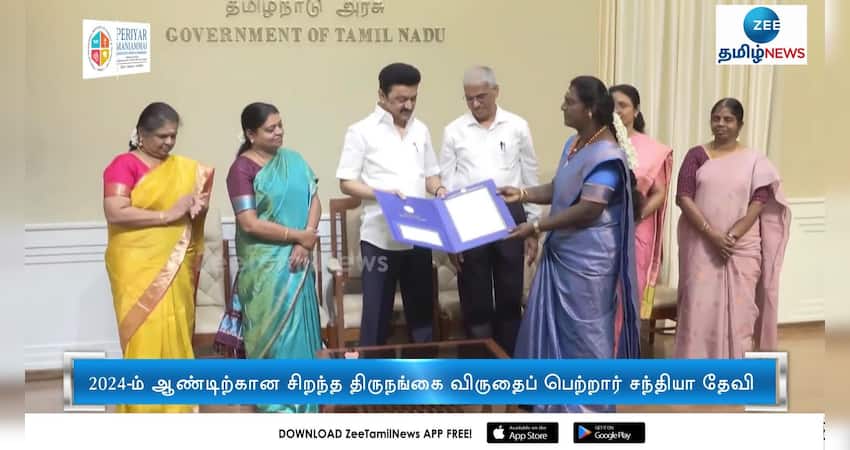 2024-ம் ஆண்டிற்கான சிறந்த திருநங்கை விருதை திருநங்கை சந்தியா தேவிக்கு முதலமைச்சர் மு.க.ஸ்டாலின் வழங்கினார்.