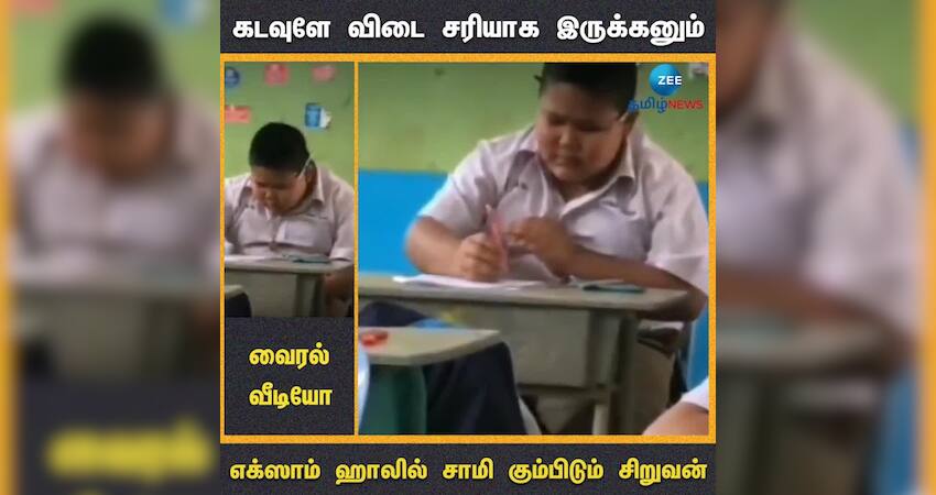 எக்ஸாம் ஹாலில் சாமியை வேண்டிக் கொண்டு தேர்வு எழுதும் சிறுவனின் வீடியோ வைரலாகியுள்ளது.