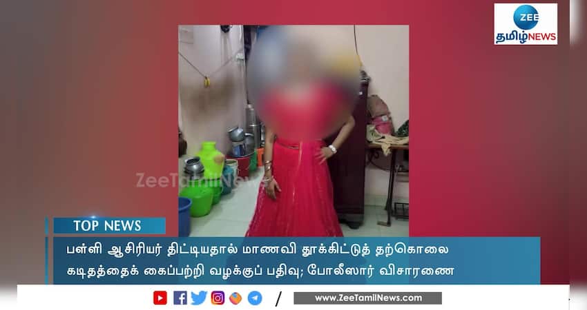ஆசிரியர் திட்டியதை அடுத்த பள்ளி மாணவி தற்கொலை செய்துகொண்ட சம்பவம் அதிர்ச்சியை ஏற்படுத்தியது. சம்பவ இடத்தில் கைப்பற்றப்பட்ட கடிதத்தை வைத்து போலீசார் வழக்குப்பதிவு செய்து விசாரணை மேற்கொண்டு வருகின்றனர்.