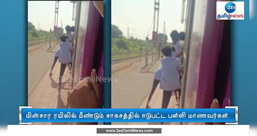 சென்னை திருவள்ளுர்-சென்ட்ரல் இடையே இயக்கப்படும் மின்சார ரயிலில் பள்ளி மாணவர்கள் மீண்டும் சாகசத்தில் ஈடுபட்ட சம்பவம் அதிர்ச்சியை ஏற்படுத்தியுள்ளது.