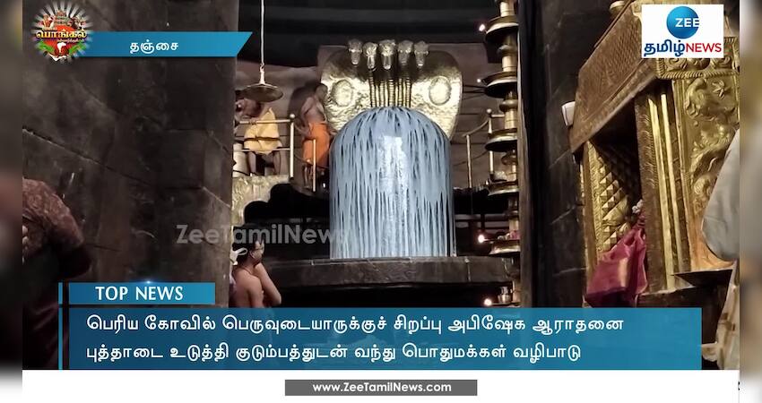 தமிழர் திருநாளான பொங்கல் விழாவையொட்டி, தஞ்சை பெரிய கோவில் பெருவுடையாருக்குச் சிறப்பு அபிஷேக வழிபாடு நடைபெற்றது.