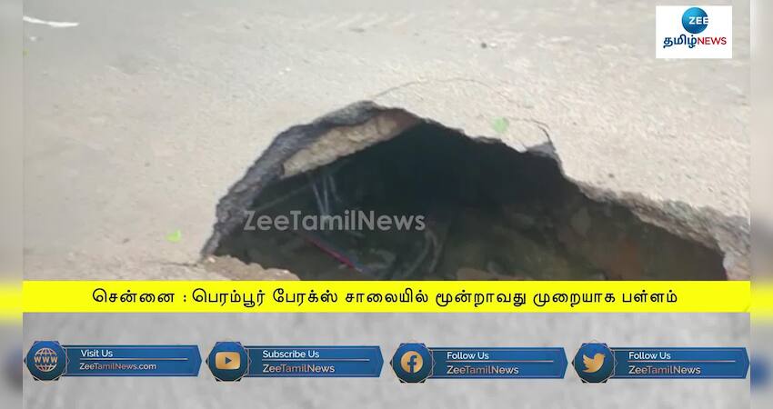 சென்னை பெரம்பூர் சாலையில் திடீரென ஏற்பட்ட பள்ளத்தால் வாகன ஓட்டிகள் சிரமத்துக்குள்ளாயினர்