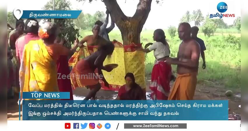 திருவண்ணாமலை அருகே வேப்ப மரத்தில் திடீரென பால் வடிந்ததால் அப்பகுதி மக்கள் மரத்திற்கு அபிஷேகம் செய்து தீபாரதனை காண்பித்து வழிபட்டனர்